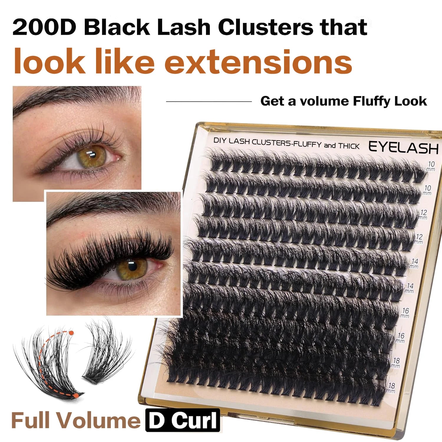 200pcs Individual Lashes 10-18mm 200D Fluffy Thick Lashes Natural Look Mixed DIY Eyelash Extension Volume Lash Clusters Makeup