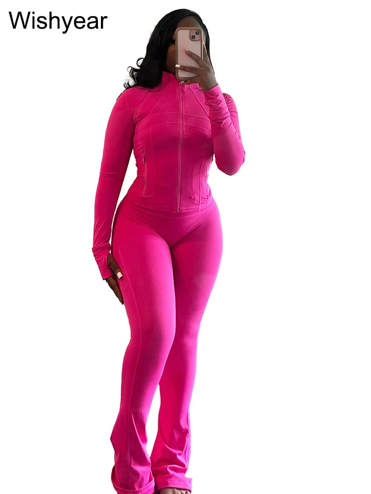 Elegant Sports Women‘s Clothing Sales Long Sleeve Tops and Flare Pants Two Pieces Sets Tracksuit Street Jogging Leggings Outfits