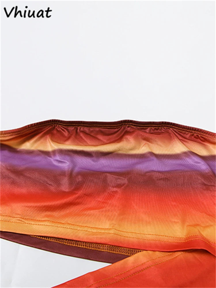 Vhiuat Gradient 2 Piece Matching Sets Hollow Out Cropped Tops+Bodycon Long Skirt Women Summer 2025 Beach Party Holiday Outfits